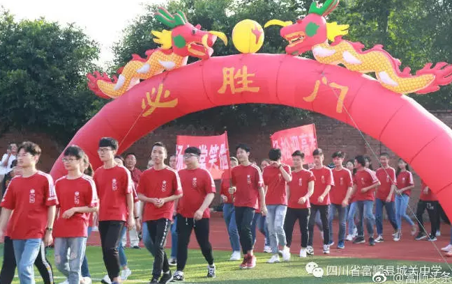 ③6月(yuè)5日,四川省自貢市富順縣城關中學舉行(xíng)了高(gāo)2018屆高(gāo)考壯行(xíng)大(dà)會(huì)暨畢業(yè)典禮儀式,學生們呼喊著(zhe)高(gāo)考口号由“必勝門”入場(chǎng)。