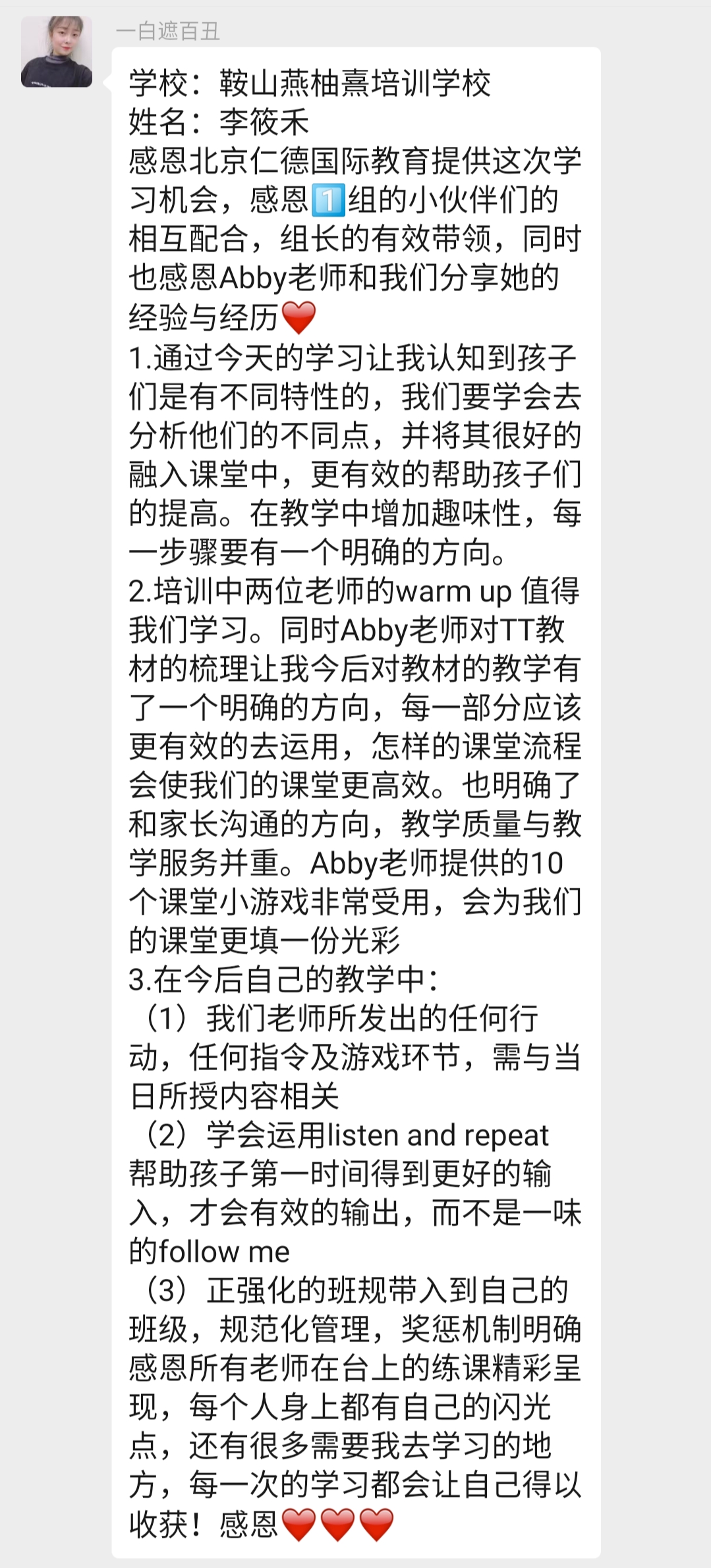 希望在仁德國際教育的(de)師(shī)訓下,讓更多的(de)教師(shī)教學更高(gāo)效!讓更多的(de)民(mín)辦教育機構受益!讓更多的(de)孩子受益!