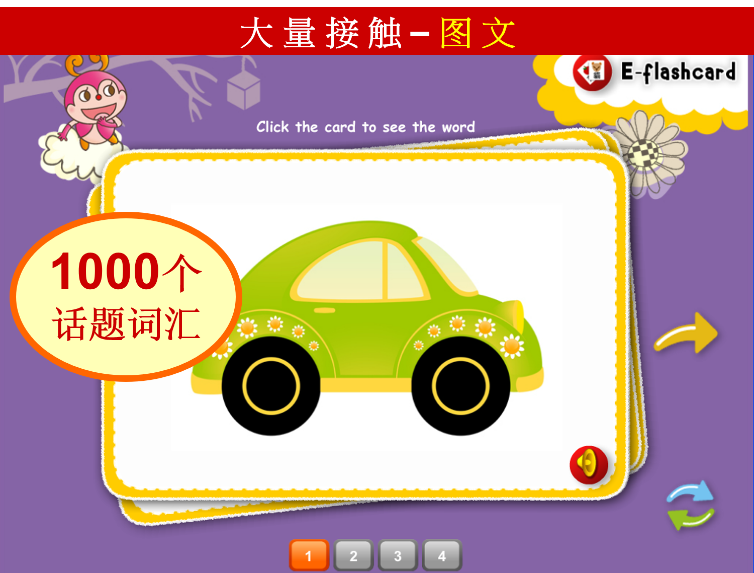 Tot Talk适合幼兒的(de)學齡前課程,遵循英語語言學習(xí)(ELL)的(de)三步驟:目标語言的(de)輸入—理(lǐ)解和(hé)輸出—拓展和(hé)延伸,整套課程率先推出全球首個(gè)幼兒英語課程iPad APP針對量度、頻度及廣度3大(dà)要點,配合完善的(de)數字化資源,确保孩子得到(dào)優質的(de)英語培訓,并保證您對教育“投資”的(de)回報。