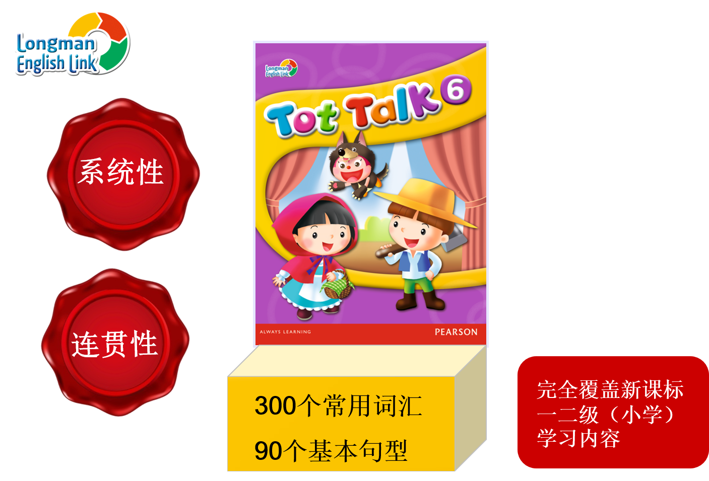 Tot Talk與新課标一級對應,掌握300個(gè)詞彙及90個(gè)句型,建立日常口語交流自信,達到(dào)小(xiǎo)學4年級水(shuǐ)平。