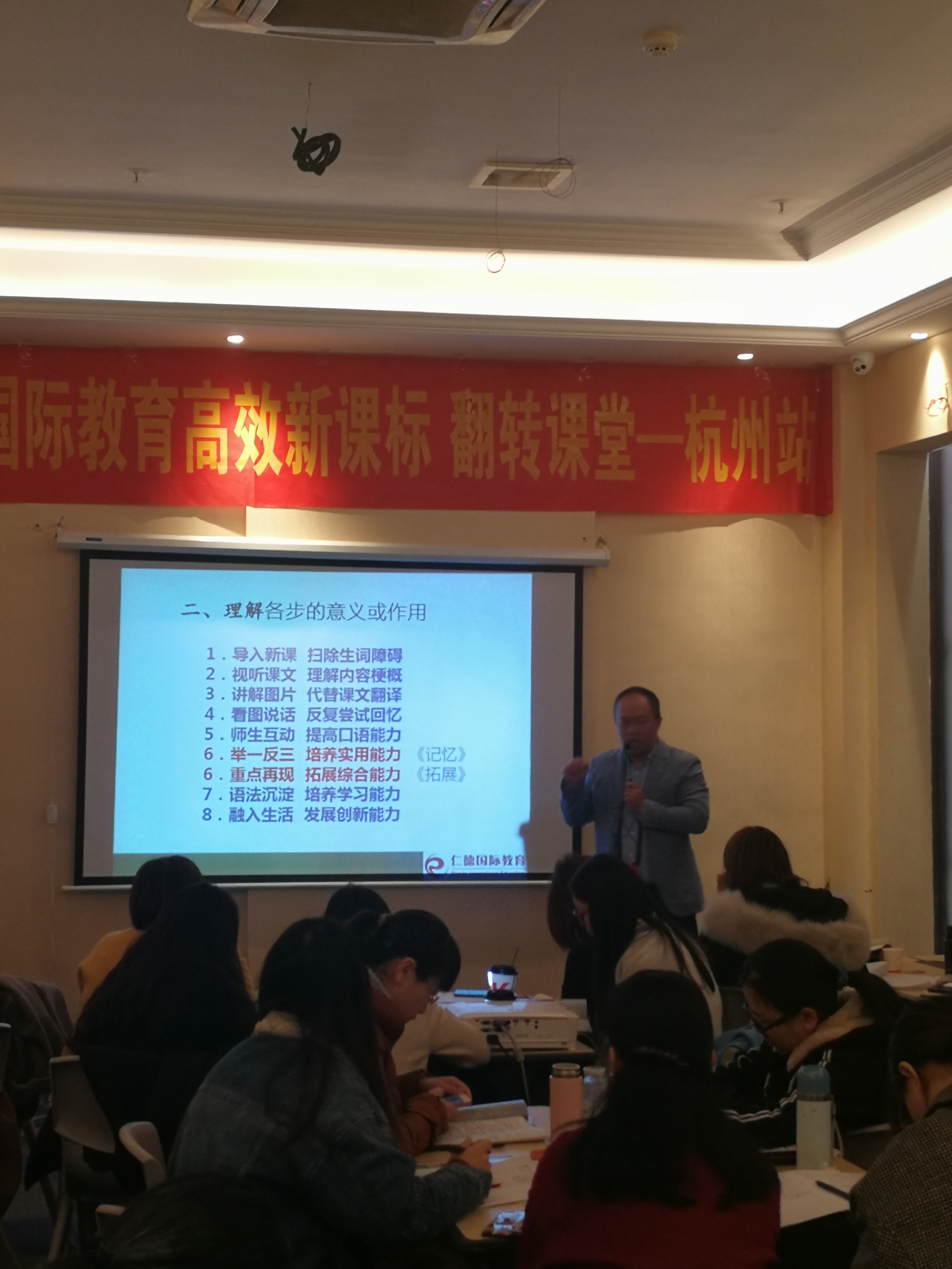 2019年12月(yuè)10日,由中教海岱國際教育(山東)集團有限公司主辦,浙江杭州品閱啓揚培訓學校(xiào)協辦的(de)“高(gāo)效新課标.翻轉課堂師(shī)訓會(huì)議”在浙江杭州熱(rè)烈召開(kāi)。參加此次會(huì)議的(de)專家有(yǒu)仁德國際教育金(jīn)牌培訓師(shī)郭磊講師(shī),以及啓揚教育的(de)優秀教師(shī)們。