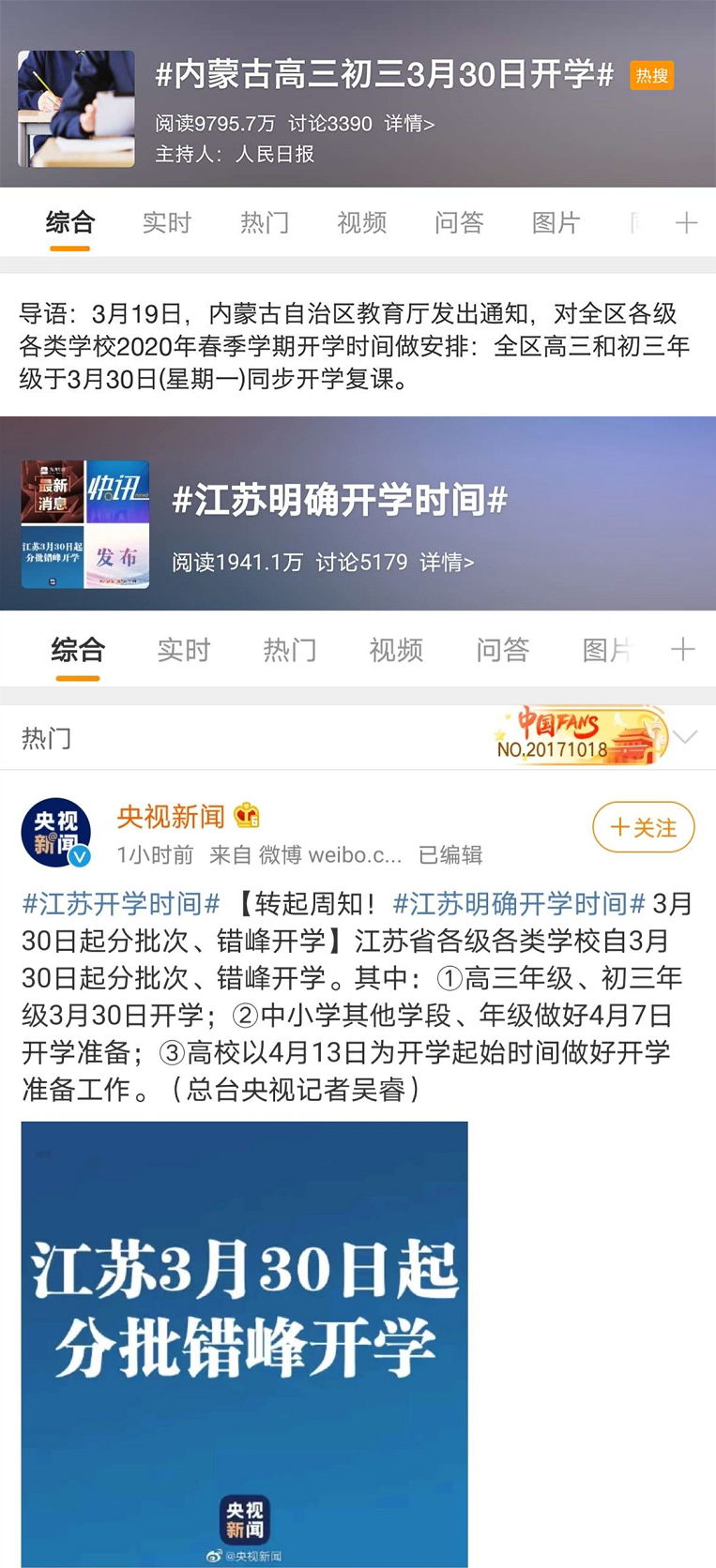 人(rén)民(mín)日報、央視新聞也(yě)在陸續最新公布多地(dì)開(kāi)學時間。