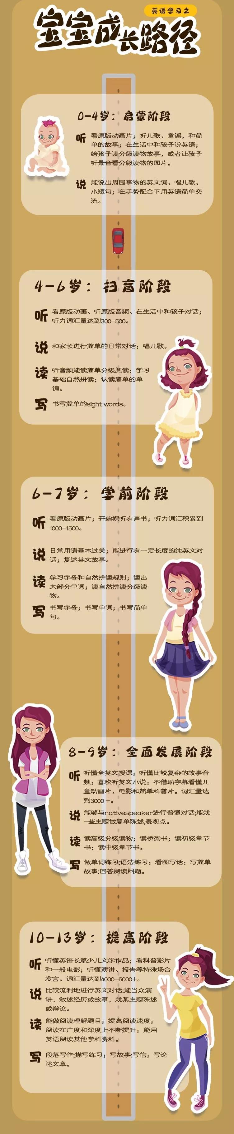 從英語啓蒙到(dào)精通的(de)5個(gè)階段,附0-13歲英語學習(xí)路(lù)線圖!