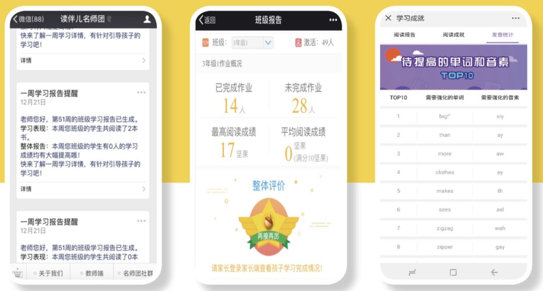 教師(shī)端可(kě)以記錄并查看學生的(de)學習(xí)數據,老師(shī)可(kě)以掌握孩子的(de)課外閱讀(dú)動态一鍵獲取年級、班級、個(gè)人(rén)報告。