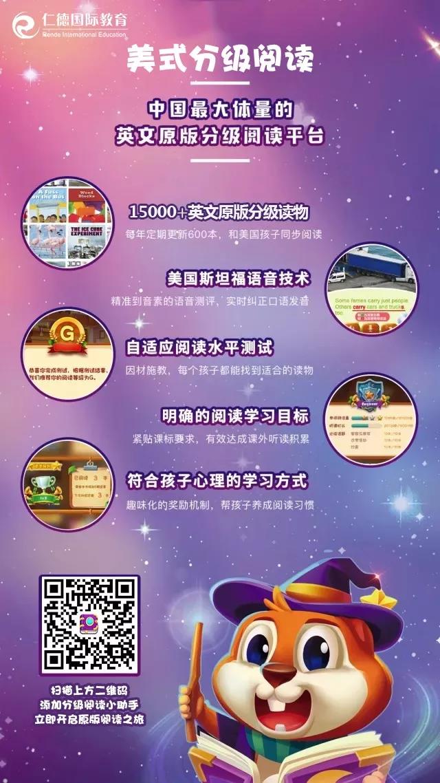 仁德美(měi)式分(fēn)級閱讀(dú)攜豐富的(de)原版英語教學資源,集閱讀(dú)、聽力和(hé)口語練習(xí)于一體。