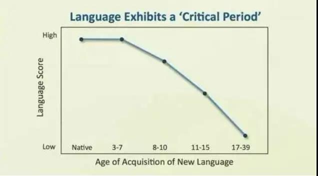 等到(dào)17歲後,語言的(de)學習(xí)效率變得很低,基本失去了第二語言學習(xí)的(de)天賦。