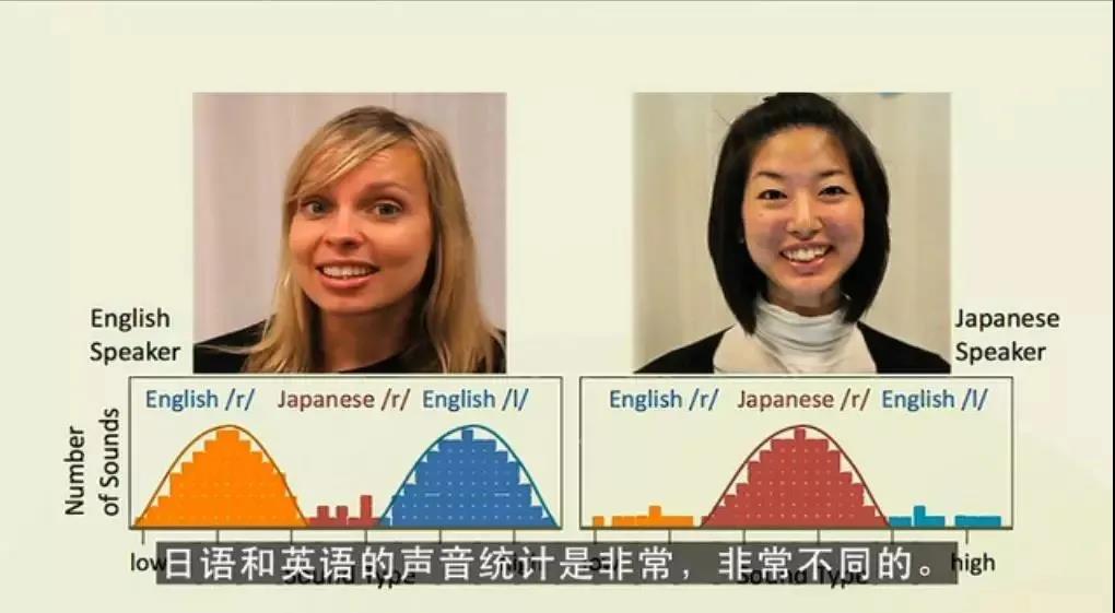 日本寶寶隻能(néng)在一歲之前,分(fēn)辨出ra和(hé)la,過了一歲就不太行(xíng)了,就是因爲他(tā)們每天聽的(de)日語裏沒有(yǒu)這兩個(gè)音(yīn)。